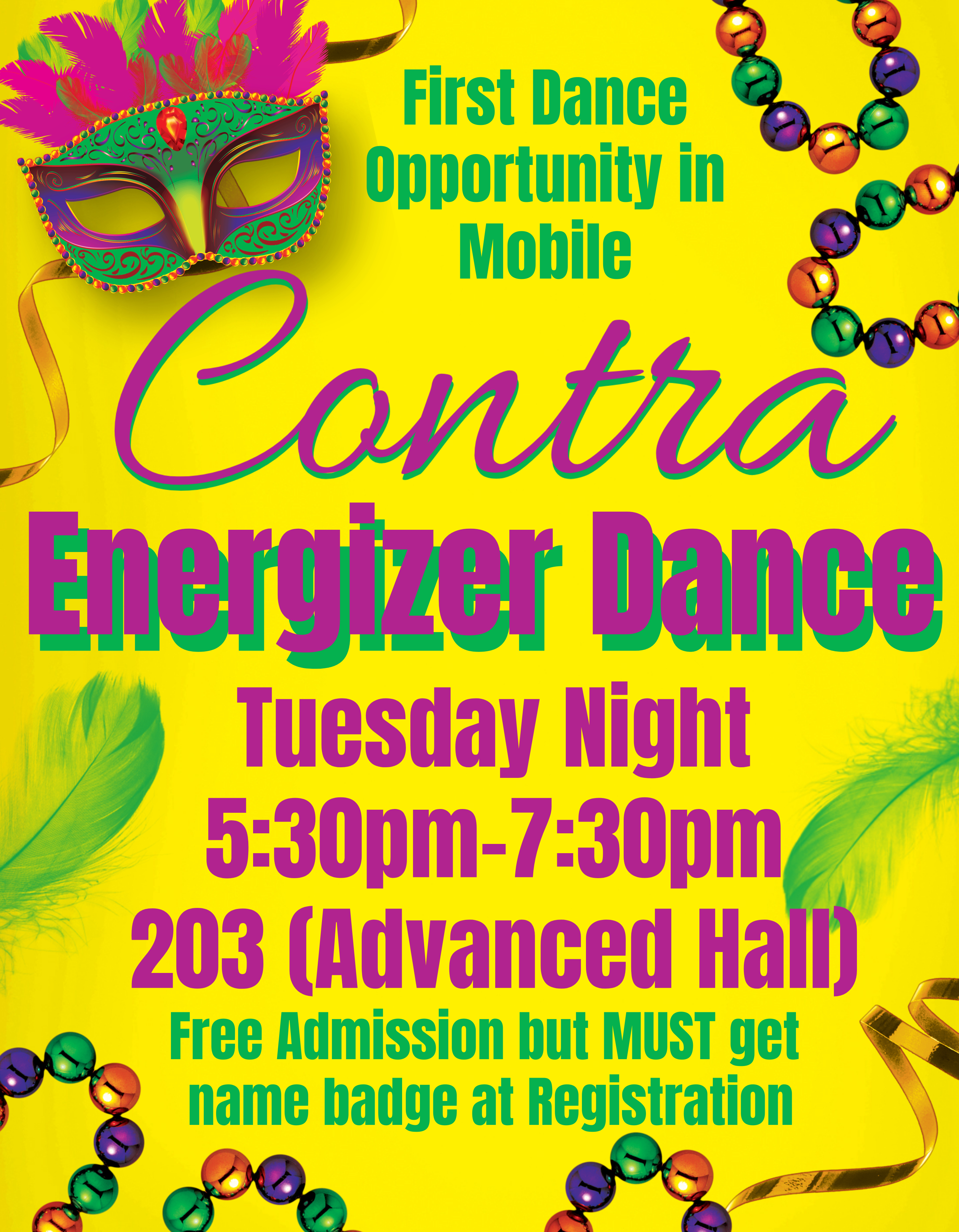 If you've never Contra Danced, come have fun and learn! It's free to the public but every one who enters the Convention Center must wear a name badge. Please email registration@72nsdc.com to have a badge waiting for you at our Registration Booth as you enter the Convention Center.