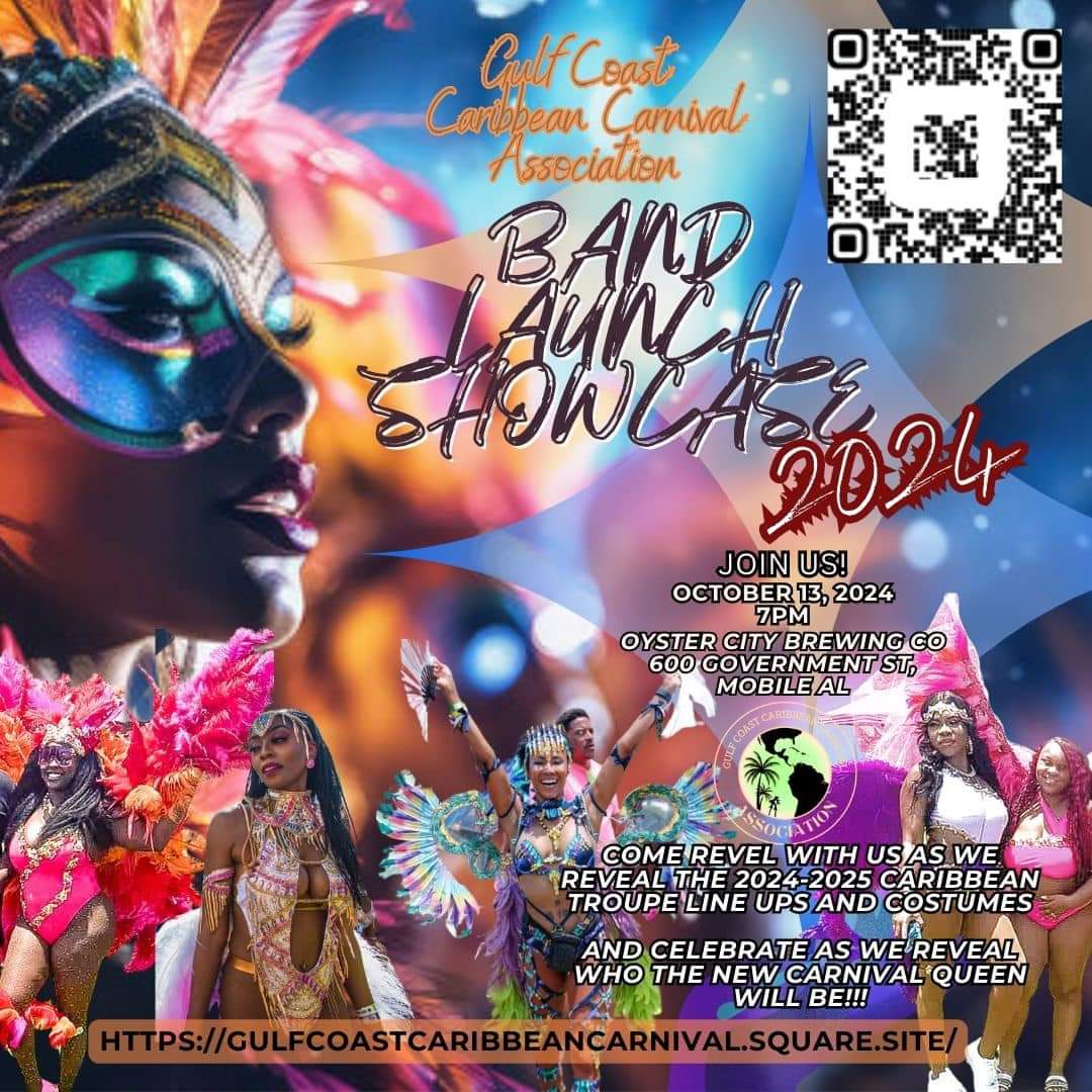 Come revel with the Gulf Coast Caribbean Carnival Association as we bring you the 2024/2025 Band Launch Showcase. See all the big bright costumes, listen to riveting Soca and Caribbean vibes music, check out the troupes and tribes for next year's carnival, and witness the biggest reveal of the year when we present this year's CARIBBEAN CARNIVAL QUEEN!!! We will host it at the sexiest outside venue and best kept secret in town where you can sample custom and local spirits and brews