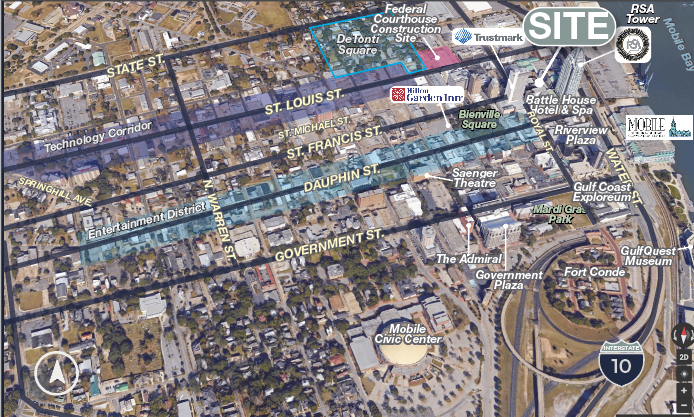 The historic First National Bank Building in Downtown Mobile is now available for lease. Built in 1909, the first floor was most recently built out as office space for a bank with original marble wainscoting and exposed bricks. The second floor is unfinished space with unique architectural exposed bricks and arches. Private parking is included with your lease (15 spaces available). The space provides a functioning elevator and an on-site generator. Superior location across from The Battle House Hotel. Offered as a Full Service lease.