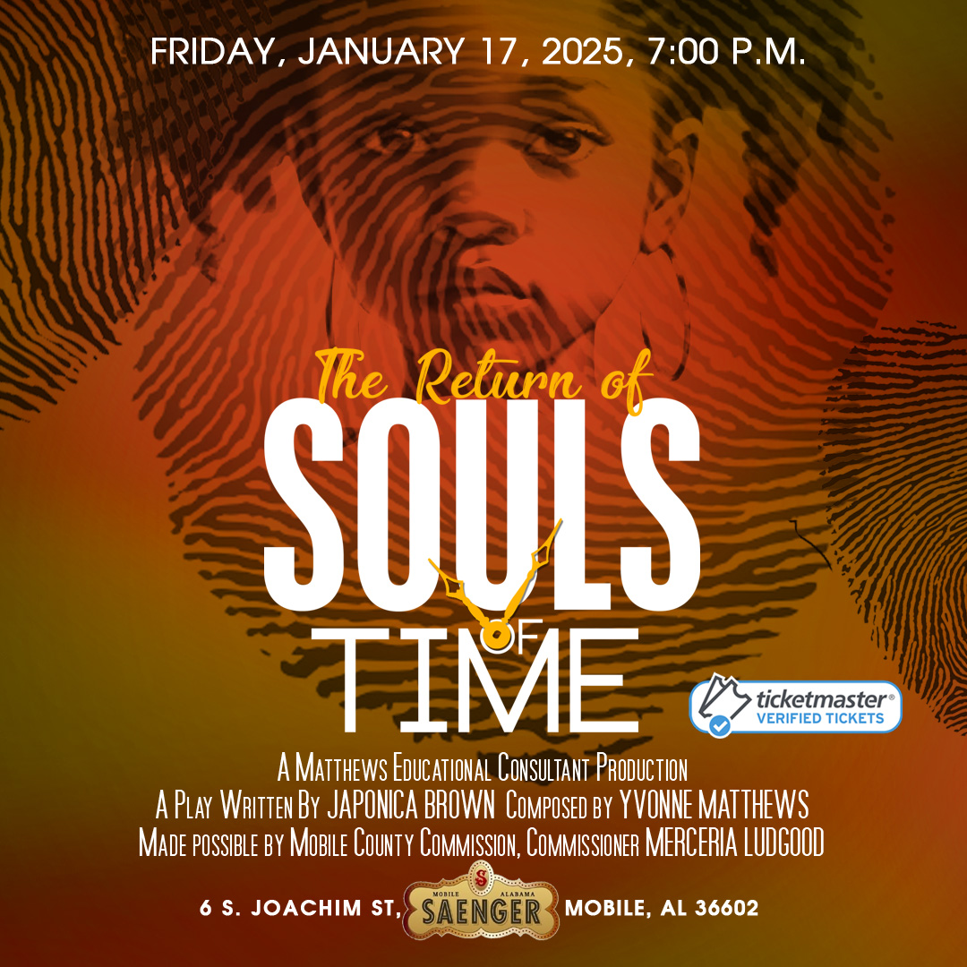 SOULS OF TIME, a musical drama, a Matthews Educational Consultant production, written and composed by Mobilians, Japonica Brown and Yvonne Matthews, is a story that follows a young girl named Jade, residing in Mobile, Alabama in 2020 before the Pandemic.