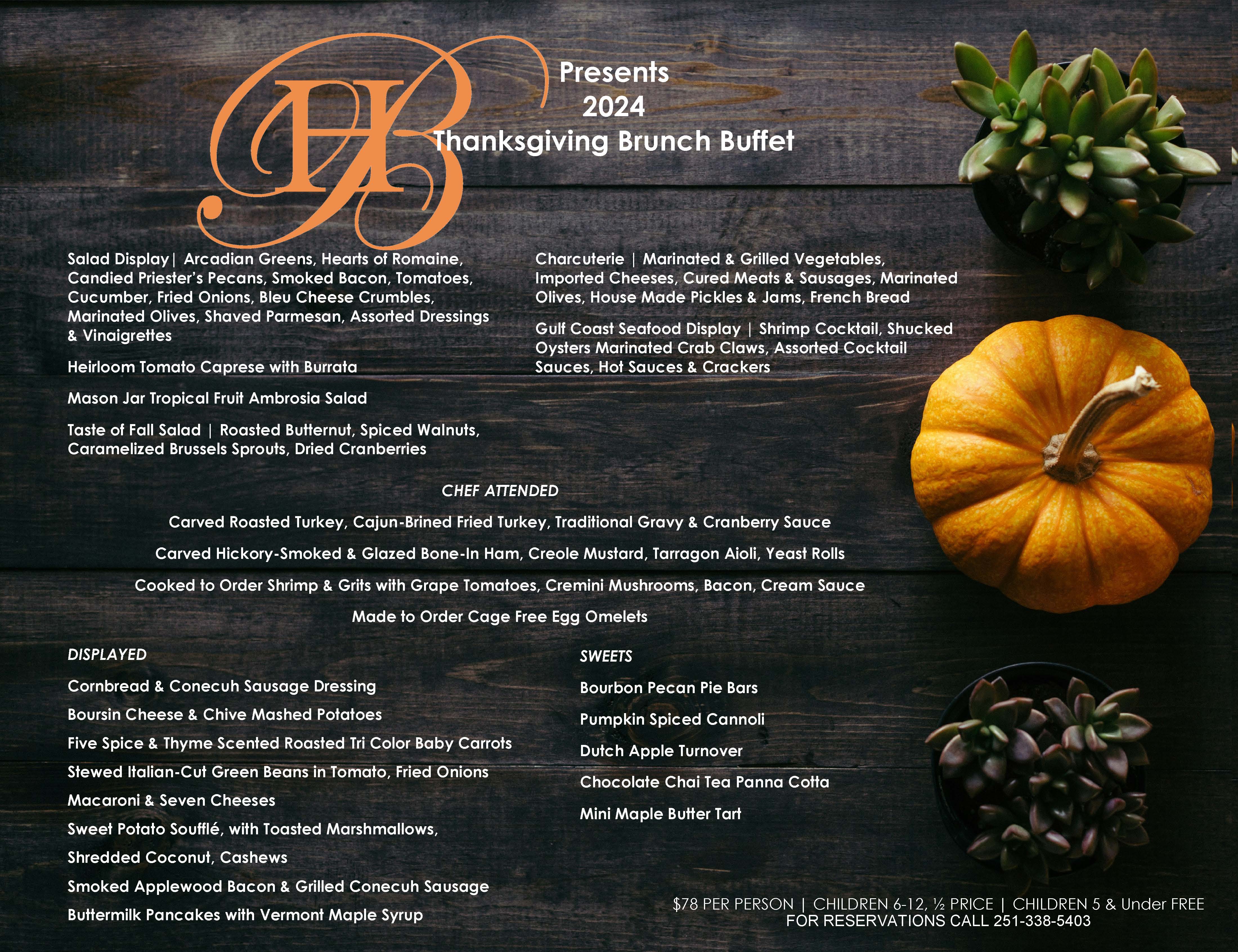 Celebrate Thanksgiving with your family and friends at The Battle House! Don’t miss out on Mobile’s most extravagant holiday brunch. Call 251-338-5403 to reserve your table today!